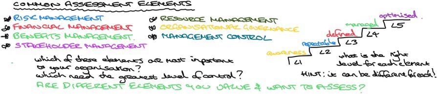 Now you should know that I think Maturity Models are good, used in the right way. The secret is to be clear on the objective and required outcome. Why are you doing a maturity assessment? Maturity Models can be weapons of mass destruction in the wrong hands and with the wrong mindset. For me, a Maturity Model provides you with the framework to determine the gaps between where you would like the organisation to be and where it is today. You can then evolve a plan to bridge those gaps. Before you do the assessment you really really really need to know what level of so called maturity is right for your organisation. You need to know which of the different elements within project and portfolio delivery are most valued and required by your key stakeholders.